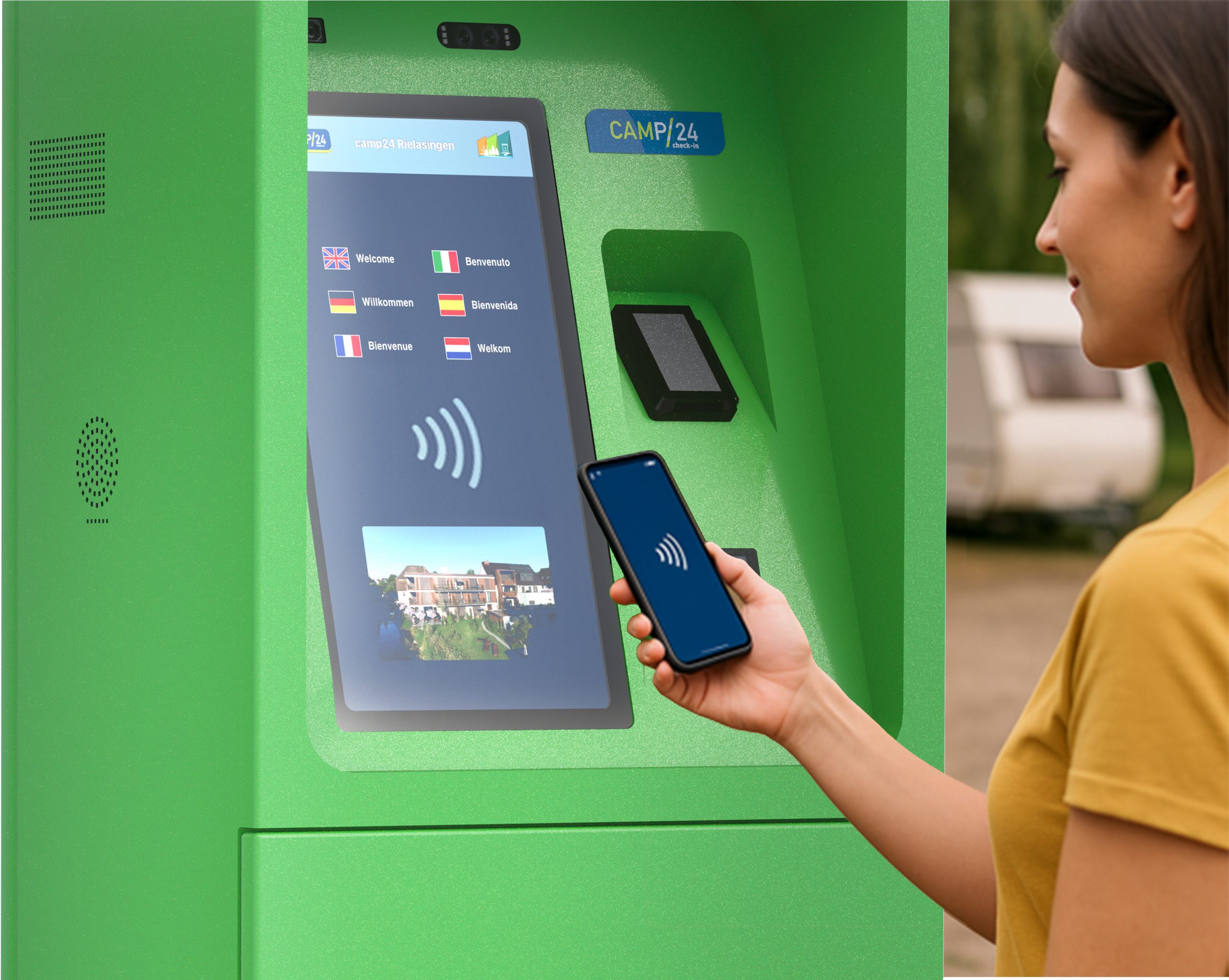 Camper wechseln vor Ort den Platz, verlängern oder verkürzen ihren Aufenthalt – ganz einfach am Terminal oder in der App.